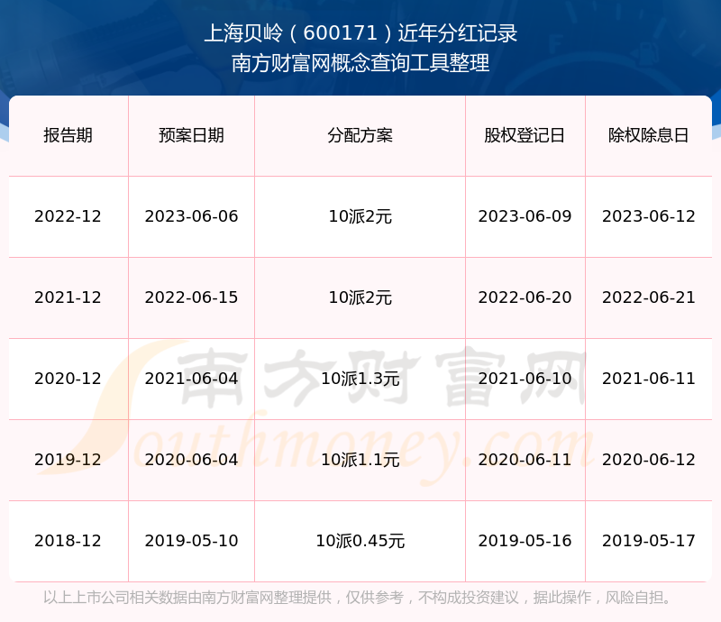 一、上海貝嶺(600171)股票分紅記錄