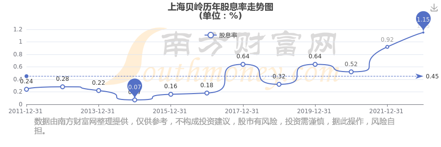 近年上海貝嶺年度股息率走勢(shì)如下圖: