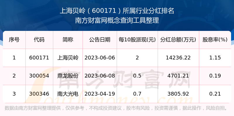 二、上海貝嶺600171行業(yè)分紅排名