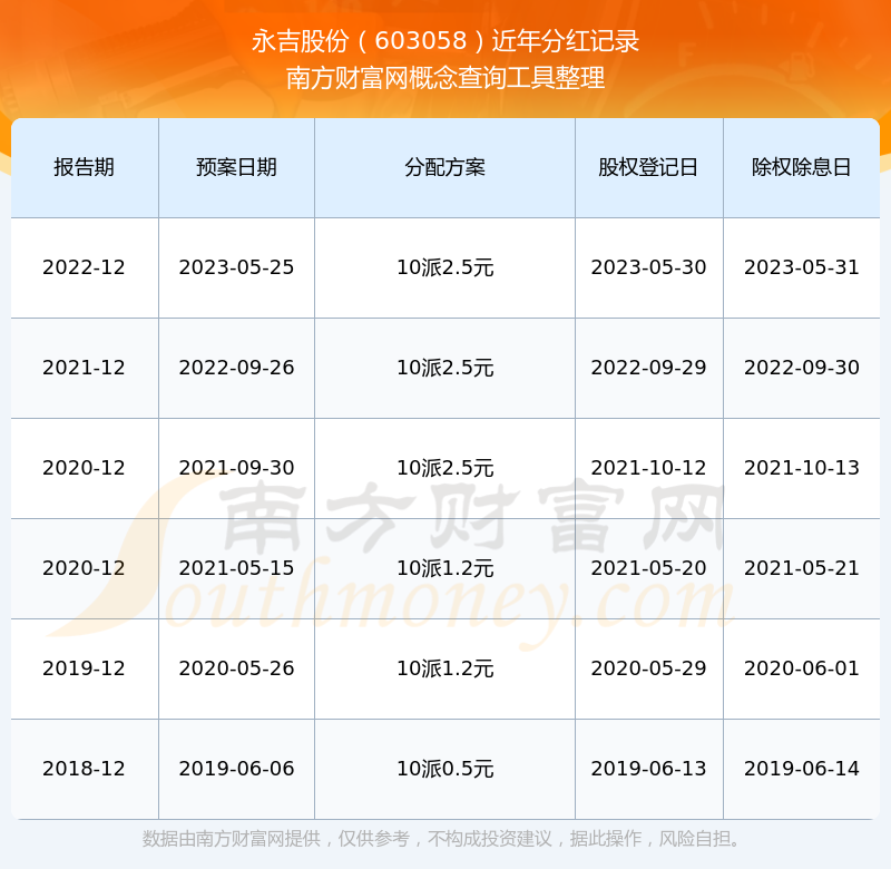 永吉股份最新一次公布的分紅方案:10派2.5元。