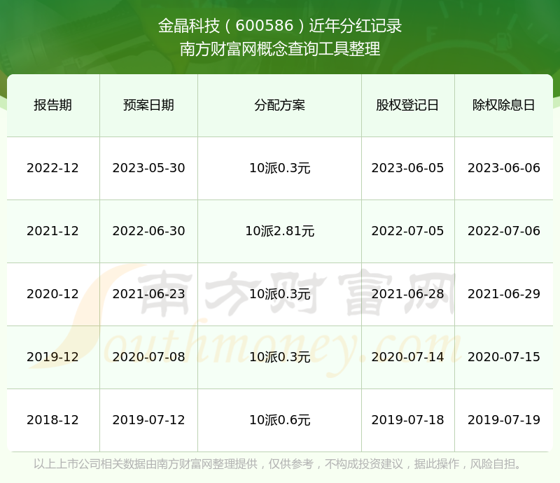 金晶科技最新一次公布的分紅方案:10派0.3元。