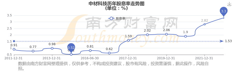 中材科技歷年股息率走勢如下圖:
