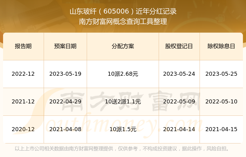 一、山東玻纖(605006)股票分紅記錄
