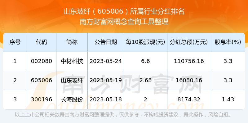 二、山東玻纖605006行業(yè)分紅排名