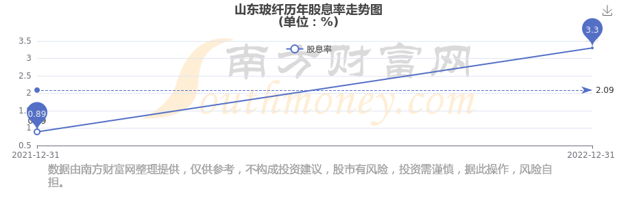 近年山東玻纖年度股息率走勢(shì)如下圖:
