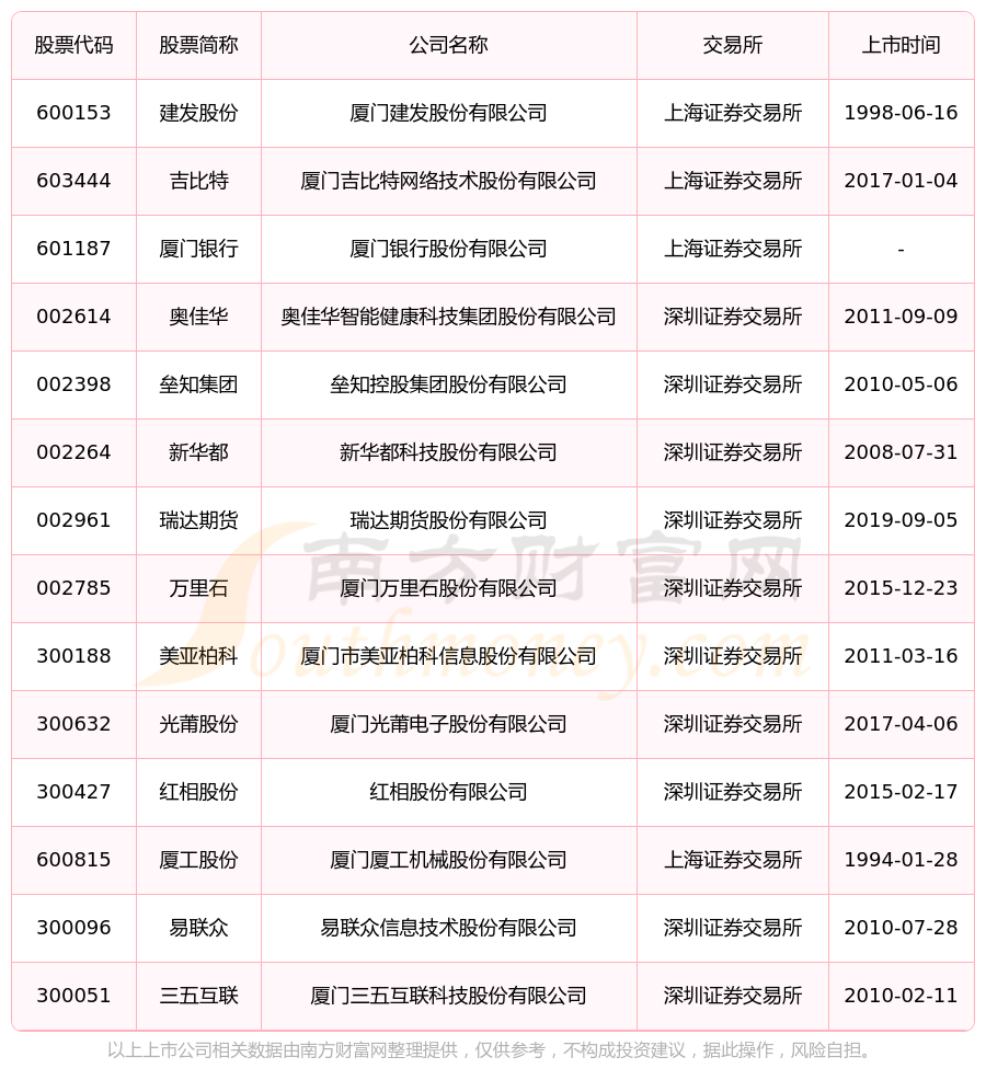 截至11月26日,廈門思明區(qū)共有14家上市公司,南方財富網(wǎng)趨勢選股系統(tǒng)為您整理了廈門思明區(qū)在A股上市的公司。