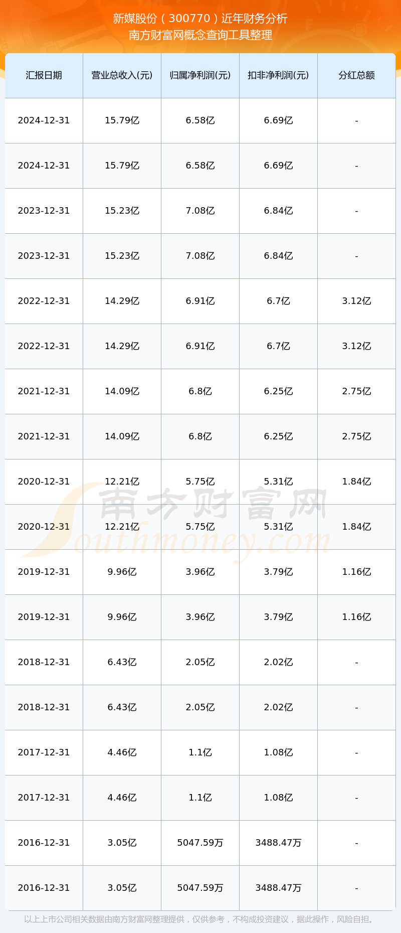 2024年報顯示,新媒股份實現(xiàn)營收15.79億,同比增長3.63%;凈利潤6.58億,同比增長-7.04%;毛利率50.2%。