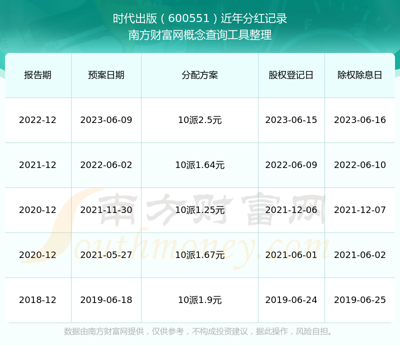 時(shí)代出版最新一次公布的分紅方案:10派2.5元。