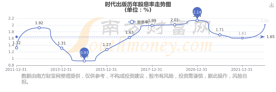 近年時(shí)代出版年度股息率走勢(shì)如下圖: