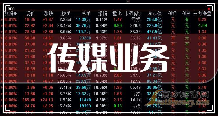 據(jù)南方財(cái)富網(wǎng)概念查詢工具數(shù)據(jù)顯示,傳媒業(yè)務(wù)相關(guān)題材上市企業(yè)有: