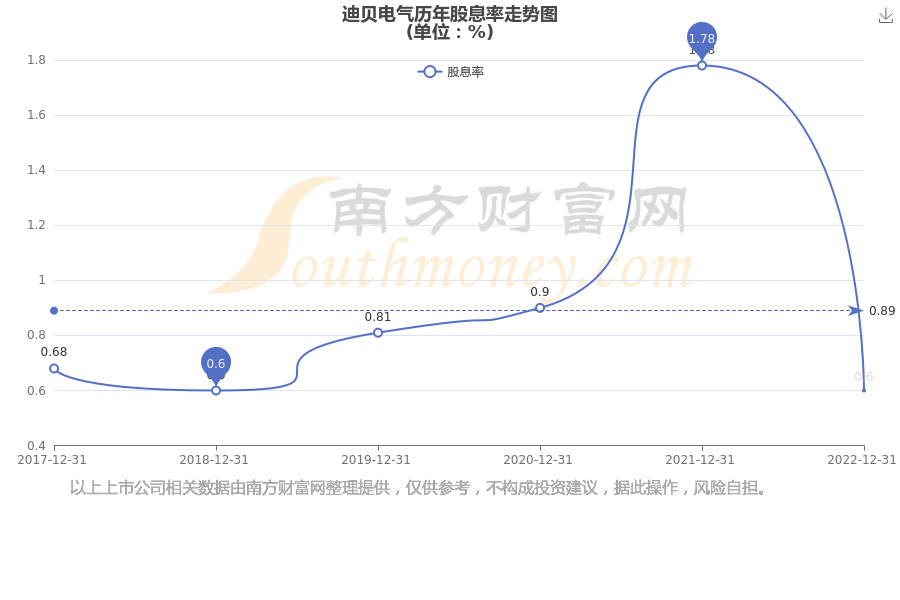 迪貝電氣最新一次公布的分紅方案:10派0.8元。