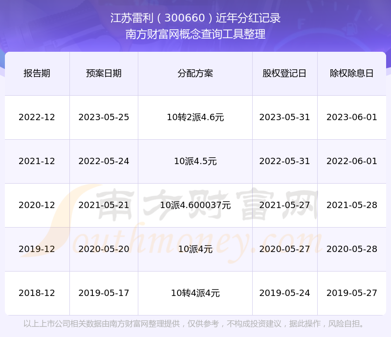 一、江蘇雷利(300660)股票分紅記錄