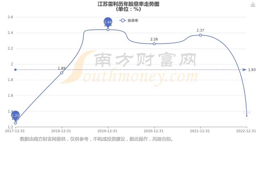 近年江蘇雷利年度股息率走勢如下圖: