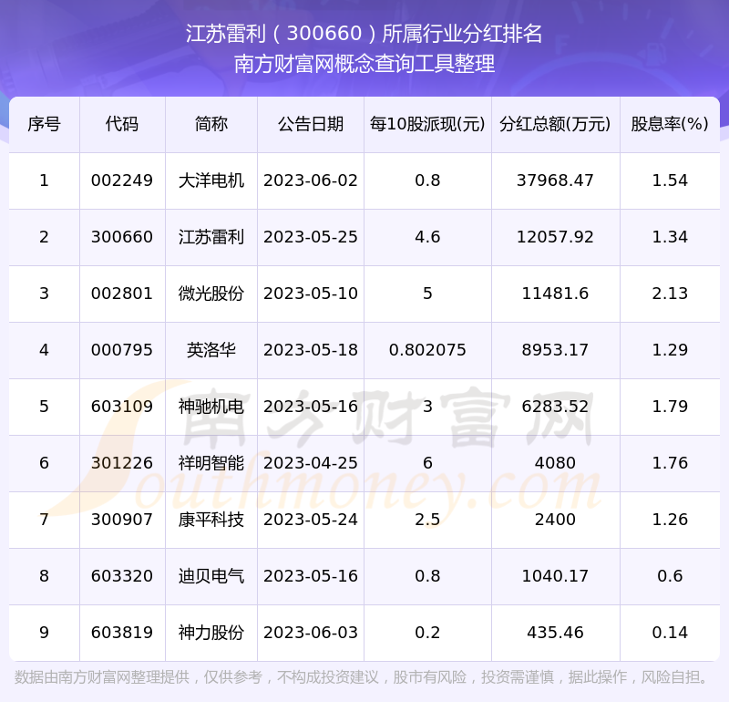 二、江蘇雷利300660行業(yè)分紅排名