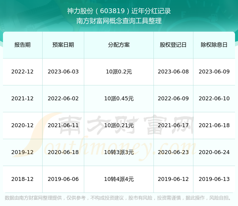 神力股份最新一次公布的分紅方案為10派0.2元。本次權益分派股權登記日為2023年6月8日,除權除息日為2023年6月9日,派息日為2023年6月9日。