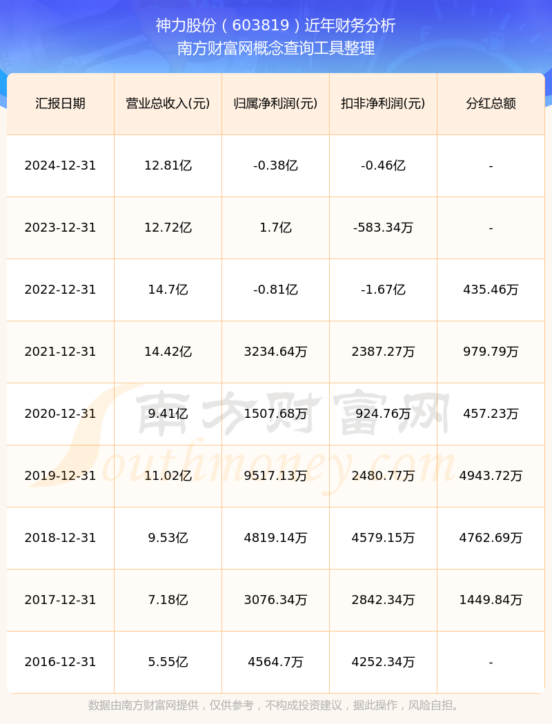 2024年報顯示,神力股份實現(xiàn)營收12.81億,同比增長0.72%;凈利潤-3843.22萬,同比增長-122.56%;毛利率8.41%。