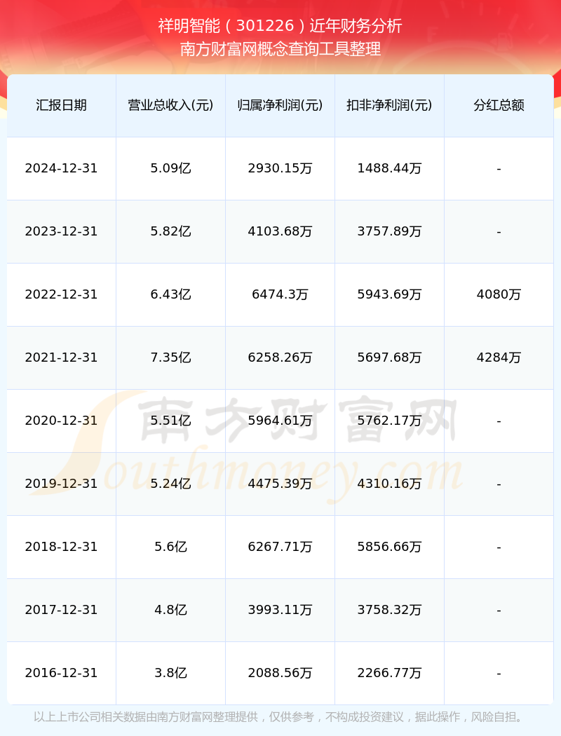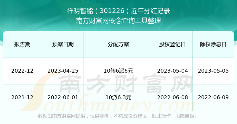 近年祥明智能分紅派息情況如下表所示: