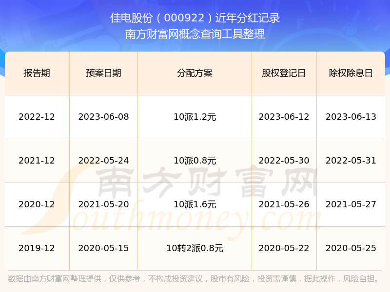 佳電股份最新一次公布的分紅方案:10派1.2元。