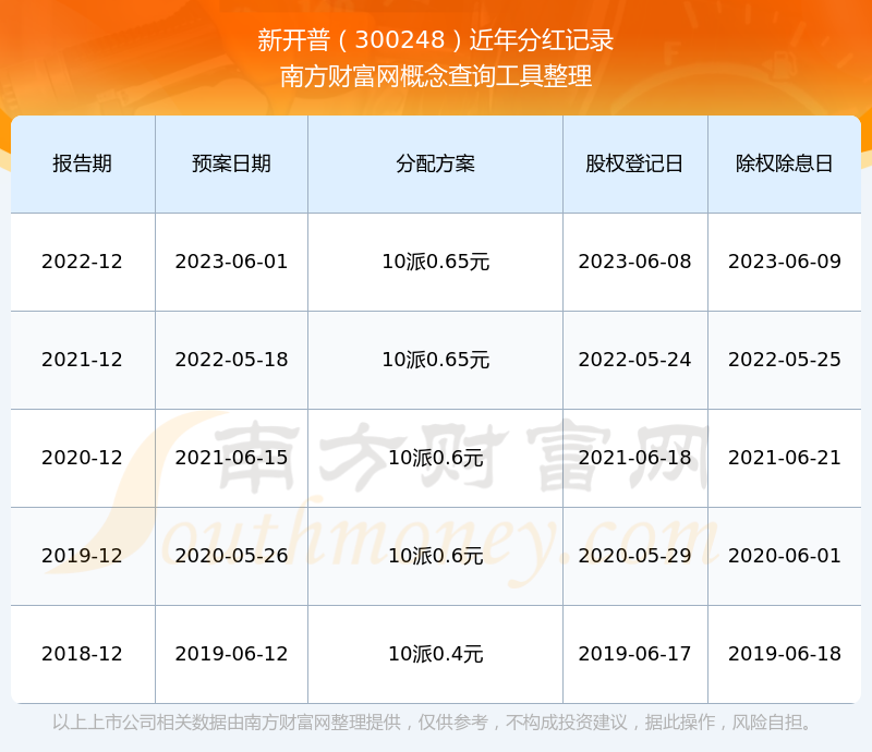 新開(kāi)普歷年分紅派息情況如下表所示: