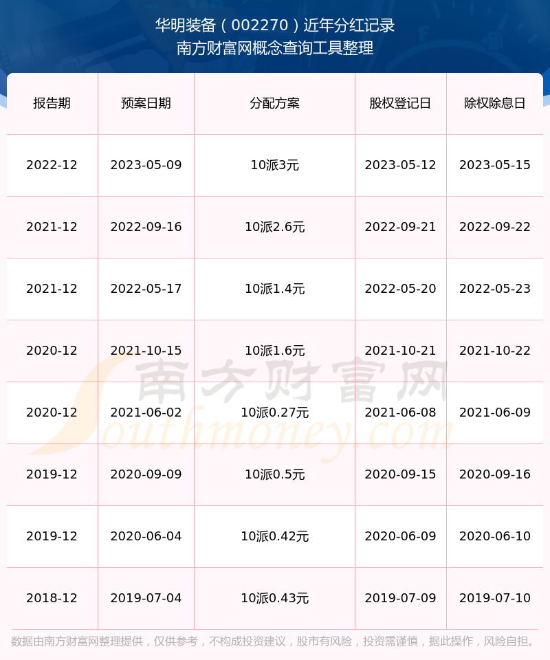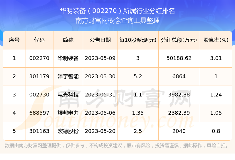 按照南方財(cái)富網(wǎng)趨勢(shì)選股系統(tǒng)統(tǒng)計(jì),華明裝備所屬行業(yè)為裝備制造行業(yè),裝備制造行業(yè)分紅排名情況如下表: