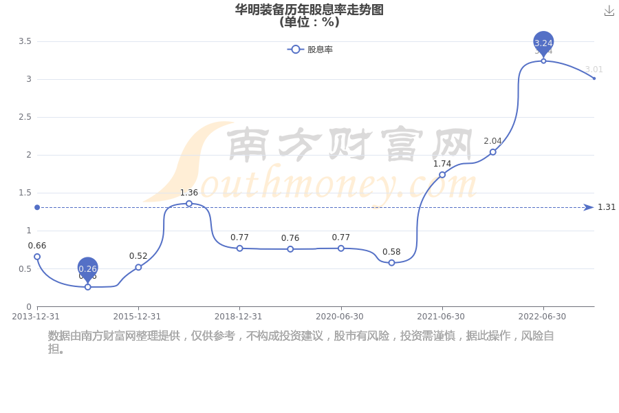 近年華明裝備年度股息率走勢(shì)如下圖: