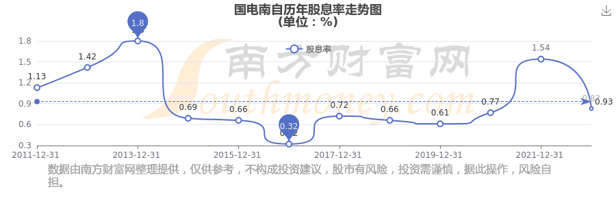 近年國(guó)電南自年度股息率走勢(shì)如下圖:
