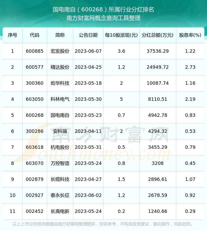 二、國(guó)電南自600268行業(yè)分紅排名