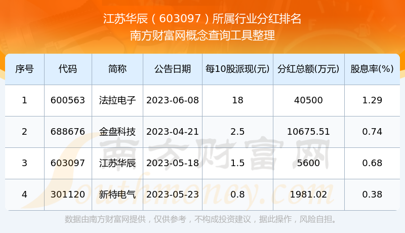 按照南方財(cái)富網(wǎng)趨勢(shì)選股系統(tǒng)統(tǒng)計(jì),江蘇華辰所屬行業(yè)為變壓器行業(yè),變壓器行業(yè)分紅排名情況如下表: