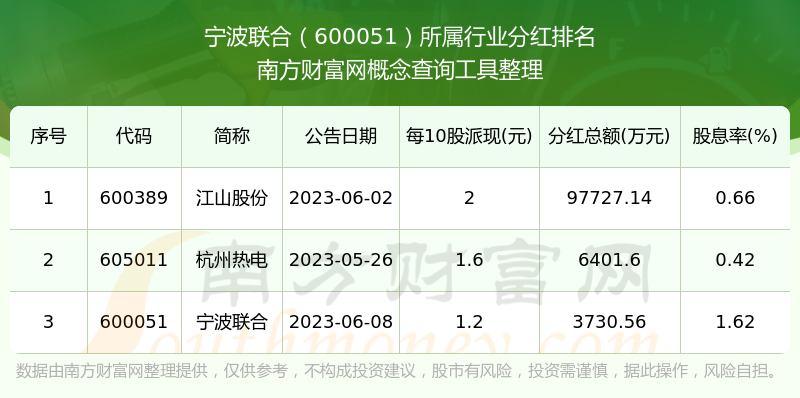 二、寧波聯(lián)合600051行業(yè)分紅排名