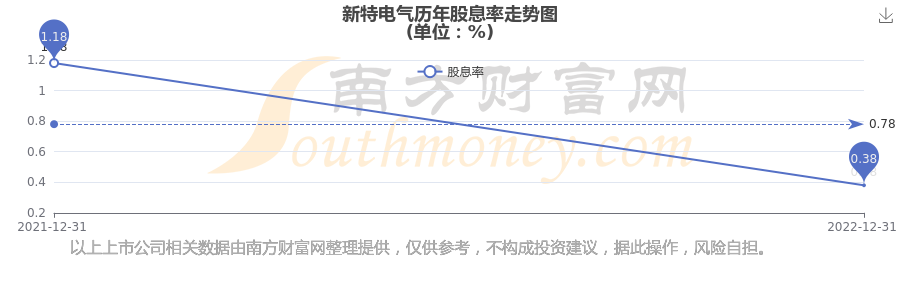 新特電氣最新一次公布的分紅方案為10轉5派0.8元。本次權益分派股權登記日為2023年5月29日,除權除息日為2023年5月30日,派息日為2023年5月30日。