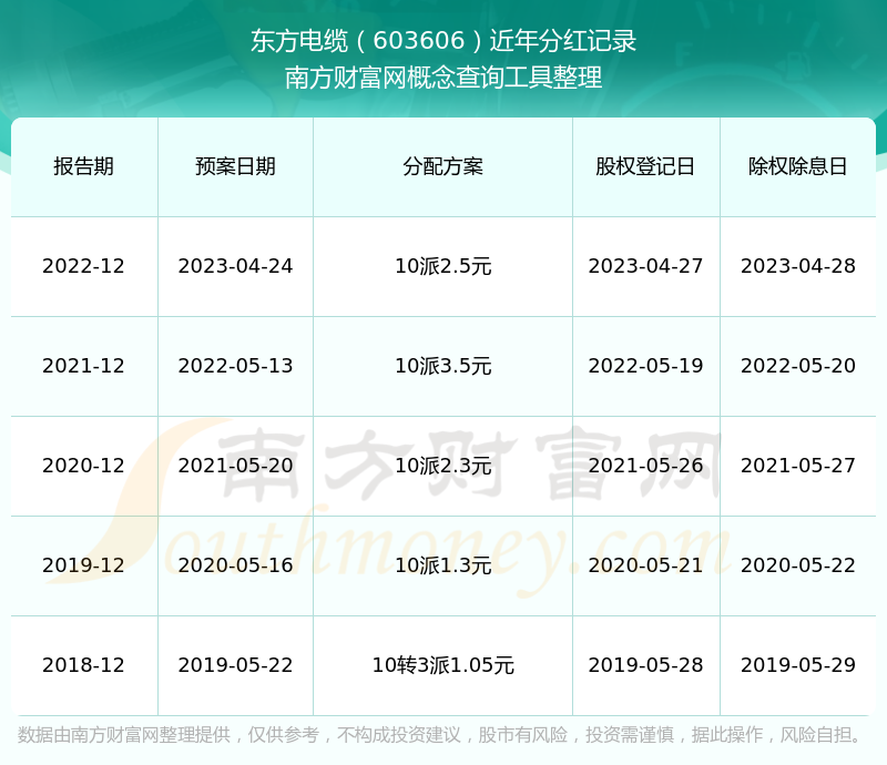 東方電纜最新一次公布的分紅方案為10派2.5元。本次權(quán)益分派股權(quán)登記日為2023年4月27日,除權(quán)除息日為2023年4月28日,派息日為2023年4月28日。