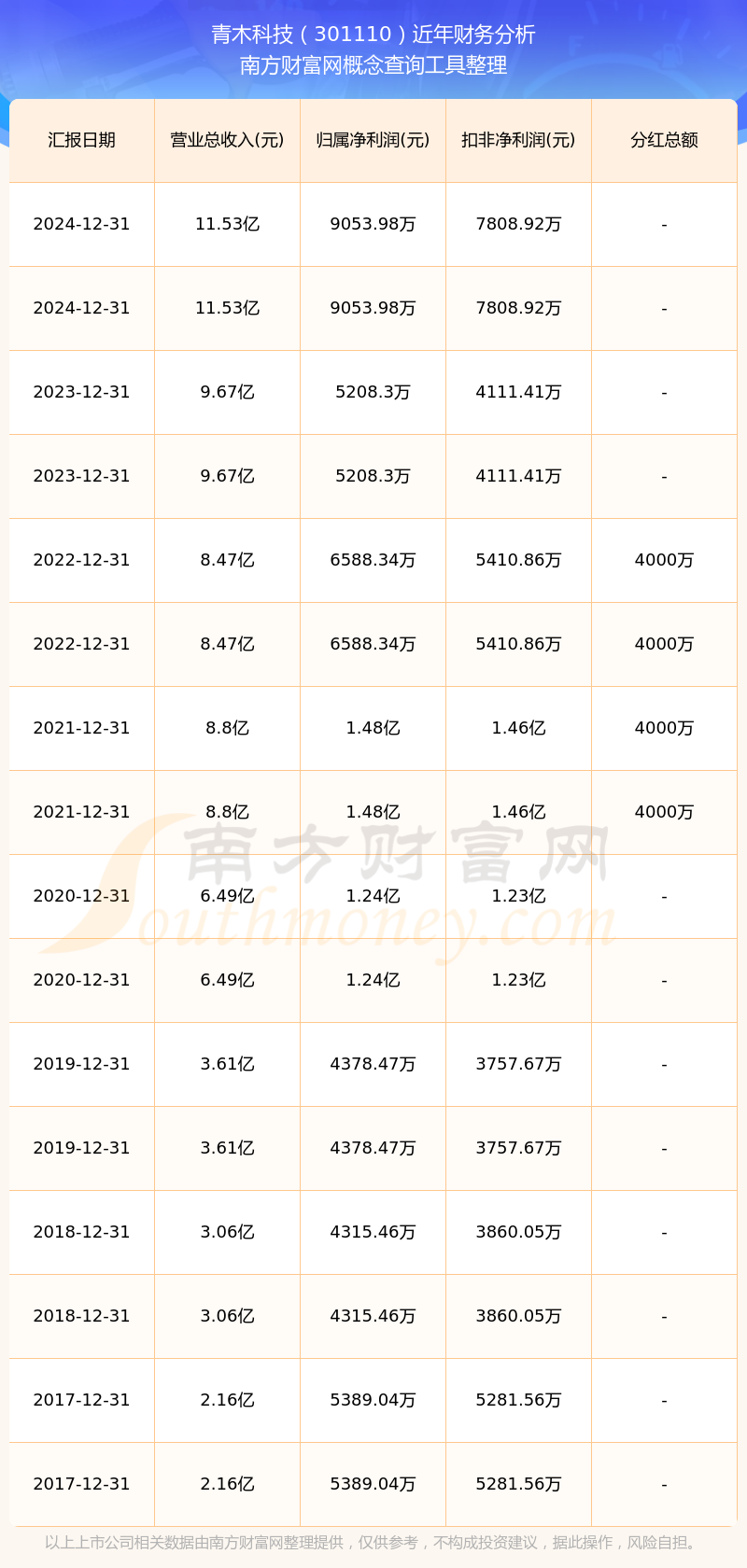 青木科技301110歷年分紅時(shí)間_分紅多少?(2025/11/15)