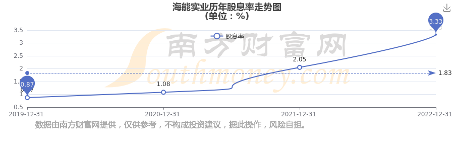 海能實(shí)業(yè)歷年股息率走勢如下圖: