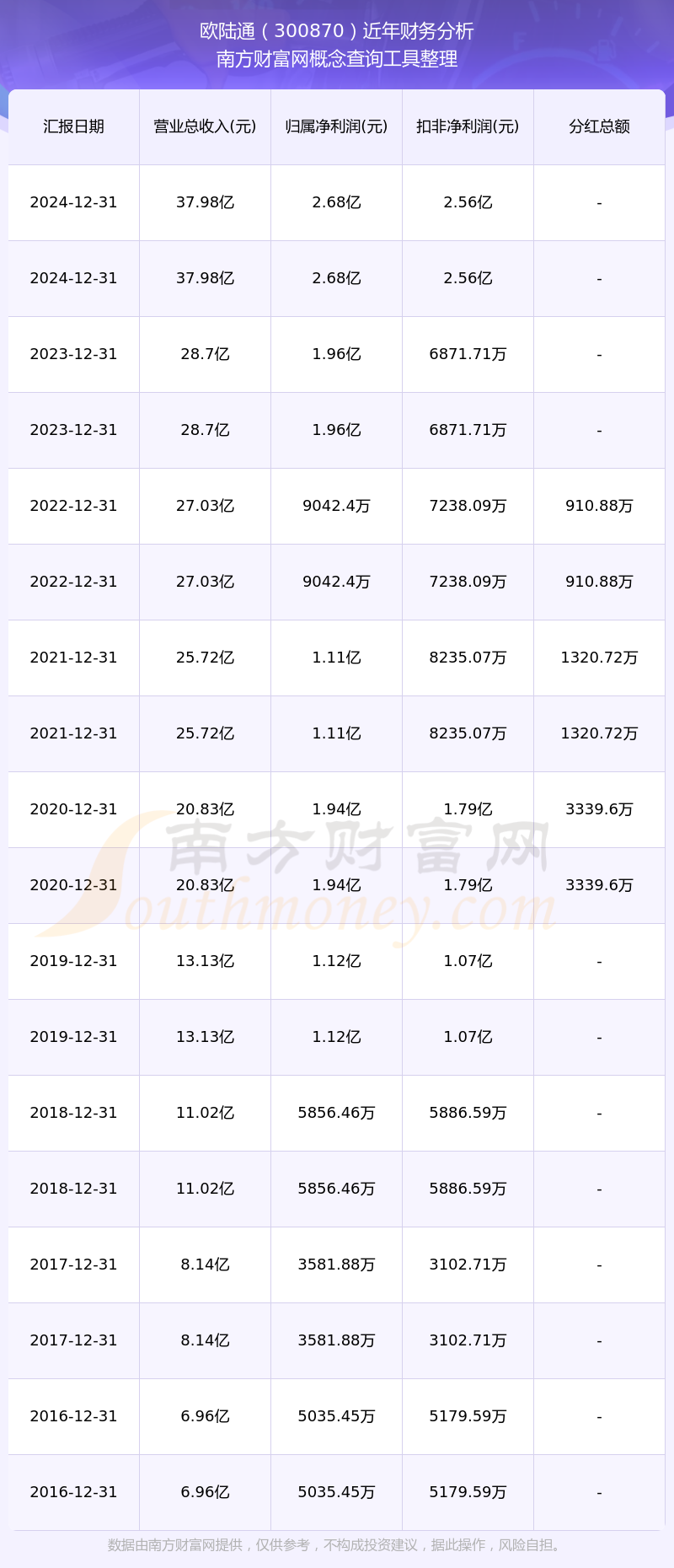 歐陸通2024年總營收37.98億,同比增長32.32%;凈利潤2.68億,同比增長36.92%;銷售毛利率21.36%。