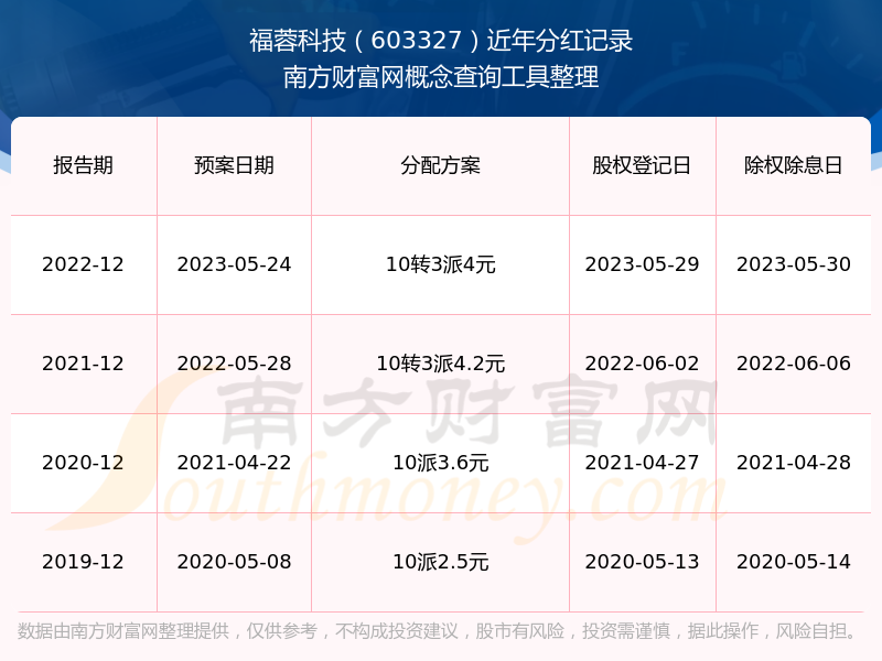 福蓉科技最新一次公布的分紅方案為10轉(zhuǎn)3派4元。本次權(quán)益分派股權(quán)登記日為2023年5月29日,除權(quán)除息日為2023年5月30日,派息日為2023年5月30日。