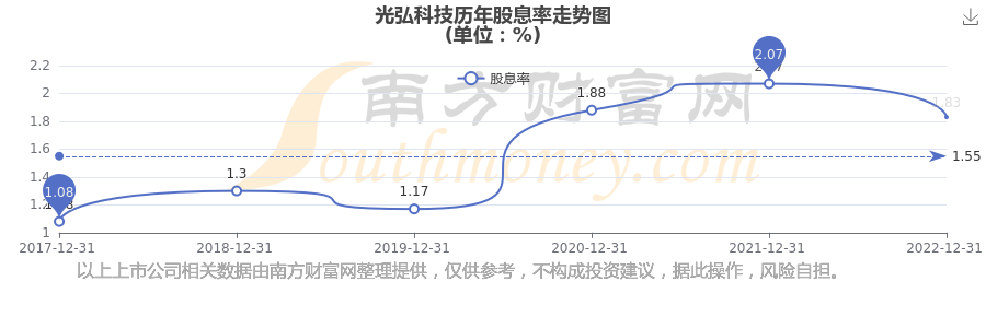 近年光弘科技年度股息率走勢(shì)如下圖:
