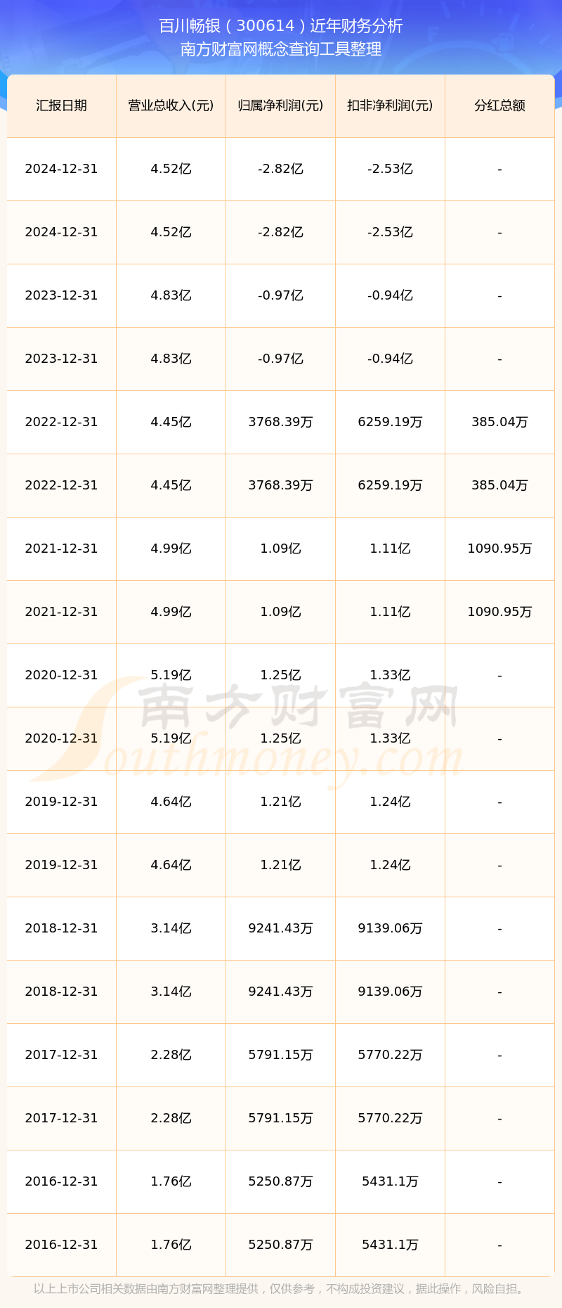 2024年百川暢銀總營(yíng)收4.52億,同比增長(zhǎng)-6.49%;凈利潤(rùn)-2.82億,同比增長(zhǎng)-189.47%;銷售毛利率17.36%。