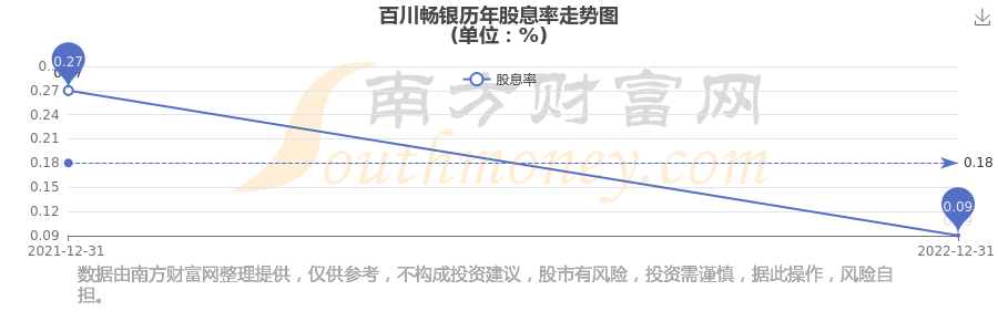 百川暢銀歷年股息率走勢(shì)如下圖: