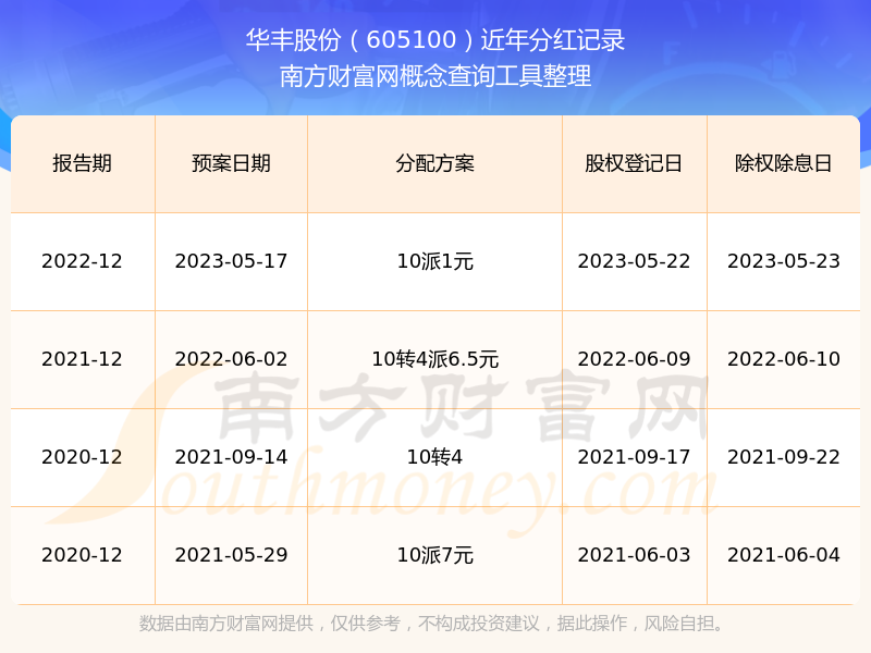 華豐股份最新一次公布的分紅方案為10派1元。本次權(quán)益分派股權(quán)登記日為2023年5月22日,除權(quán)除息日為2023年5月23日,派息日為2023年5月23日。