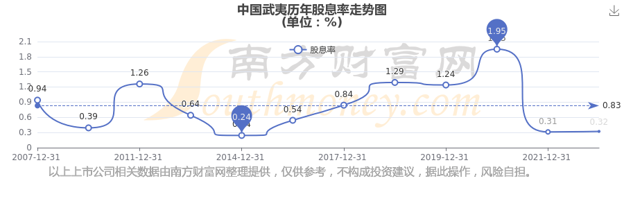 近年中國(guó)武夷年度股息率走勢(shì)如下圖: