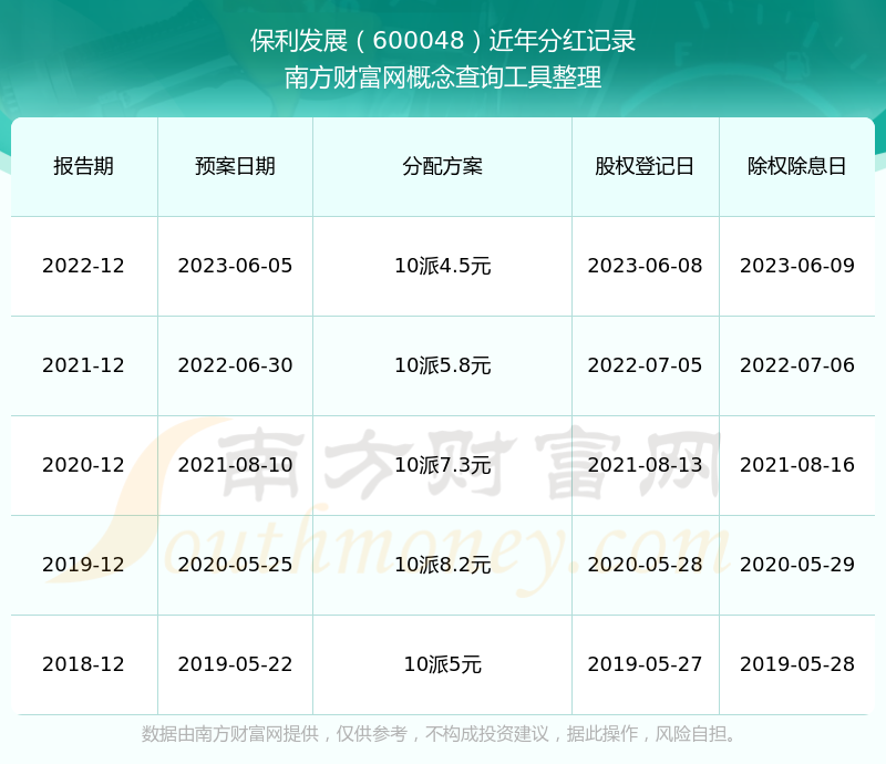 保利發(fā)展最新一次公布的分紅方案為10派4.5元。本次權(quán)益分派股權(quán)登記日為2023年6月8日,除權(quán)除息日為2023年6月9日,派息日為2023年6月9日。