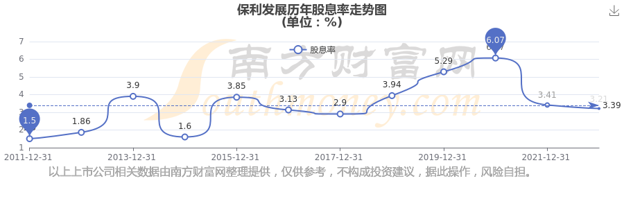 近年保利發(fā)展年度股息率走勢(shì)如下圖: