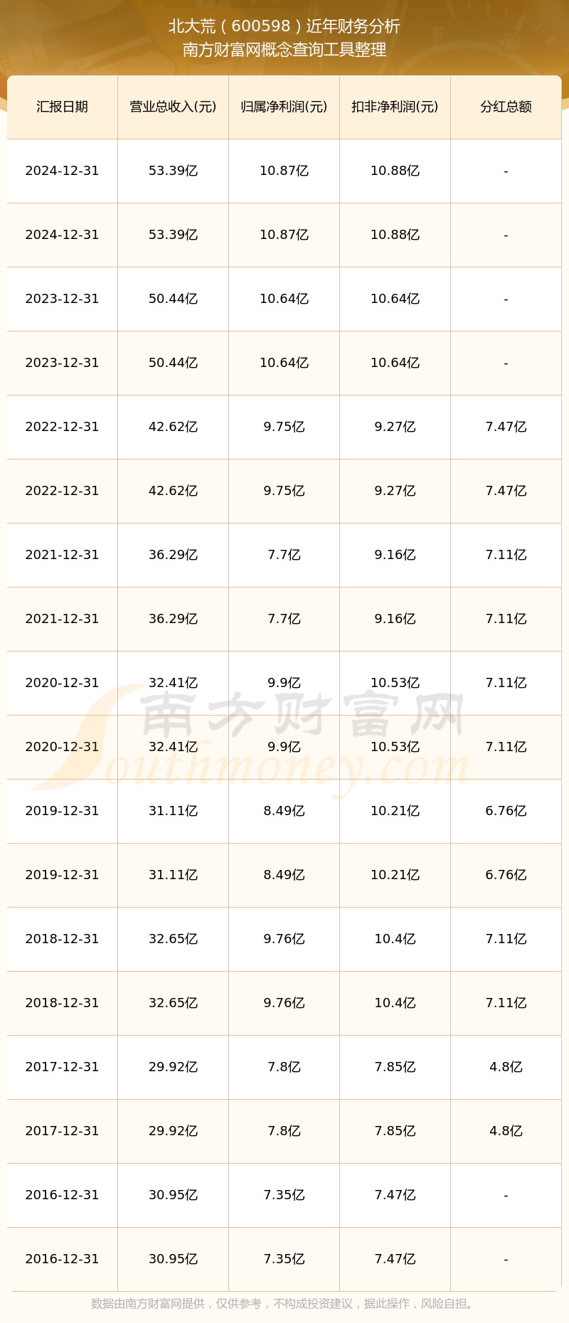 近年北大荒分紅派息情況如下表所示: