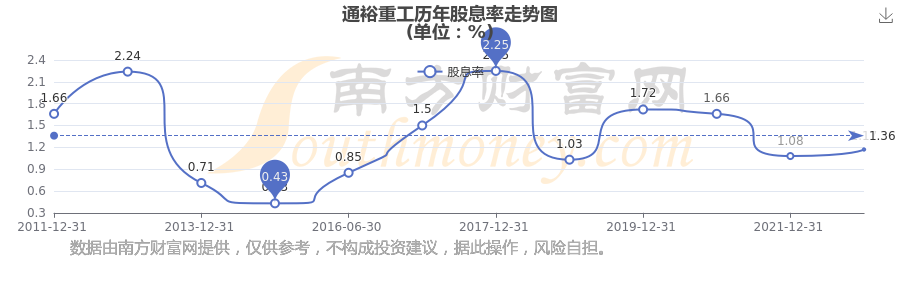 近年通裕重工年度股息率走勢(shì)如下圖: