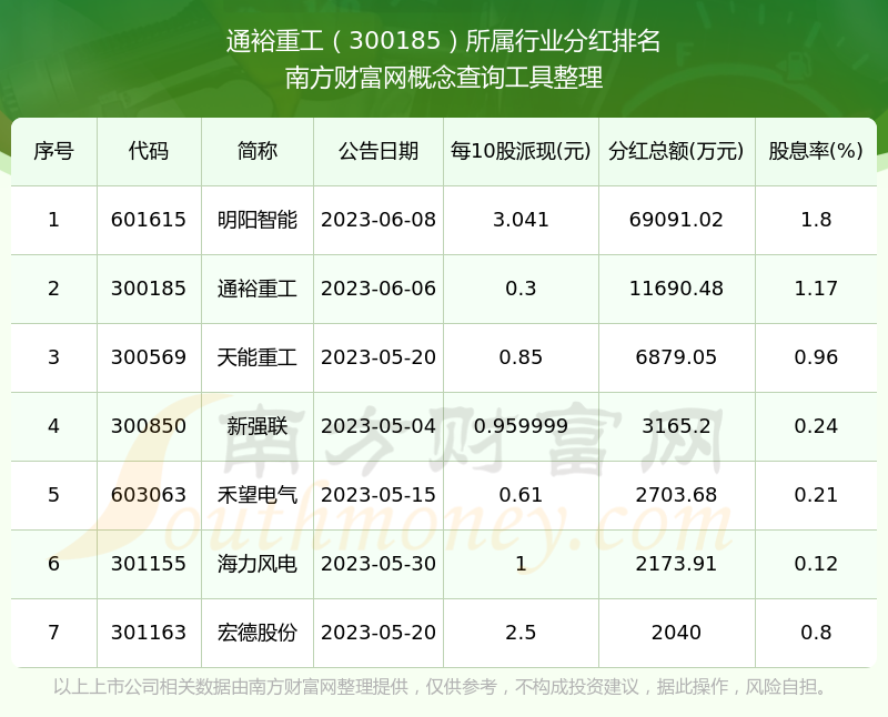 二、通裕重工300185行業(yè)分紅排名