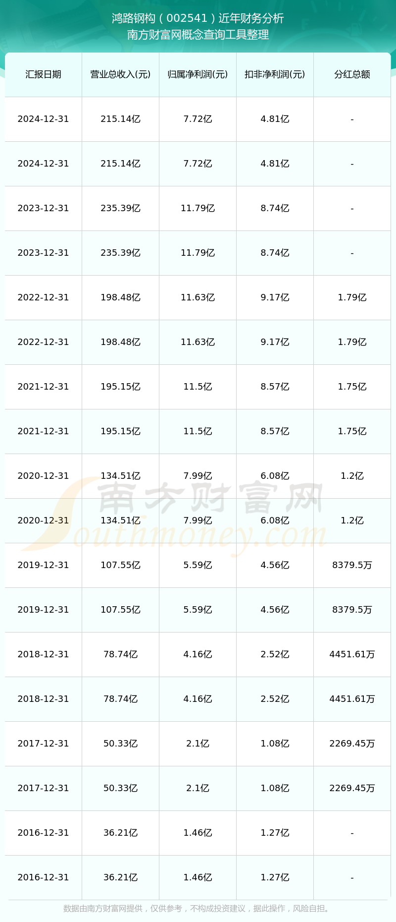 近年鴻路鋼構(gòu)分紅派息情況如下表所示:
