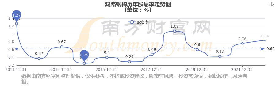 鴻路鋼構(gòu)歷年股息率走勢(shì)如下圖: