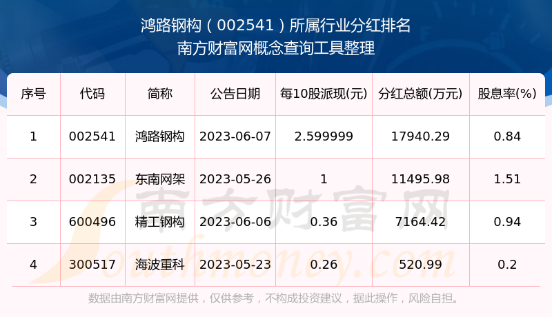 二、鴻路鋼構(gòu)002541行業(yè)分紅排名