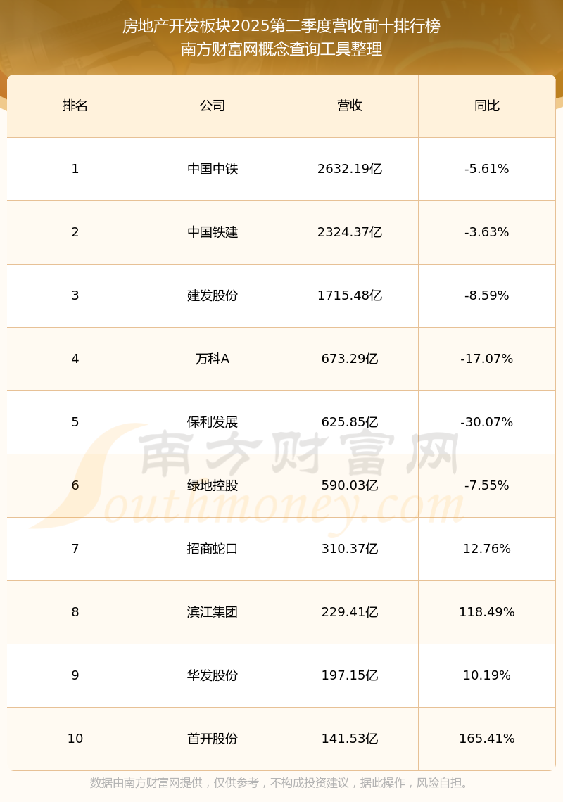 按照南方財(cái)富網(wǎng)概念查詢工具統(tǒng)計(jì),該股所屬板塊為房地產(chǎn)開發(fā)板塊,該板塊共有143只股票,金地集團(tuán)2025第二季度營收在該板塊中排名為第13名,該板塊2025第二季度營收排名前十的股票如下表: