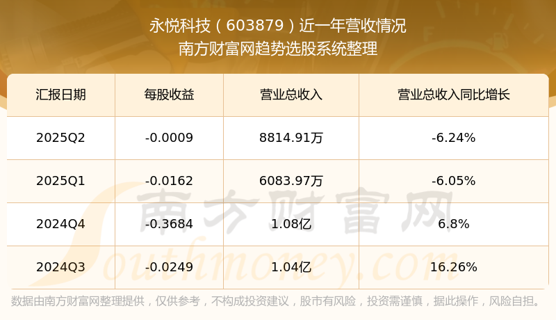 按照南方財(cái)富網(wǎng)概念查詢工具統(tǒng)計(jì),該股所屬板塊為不飽和樹脂板塊,該板塊共有9只股票,永悅科技2025第二季度營收在該板塊中排名為第9名,該板塊2025第二季度營收排名前十的股票如下表: